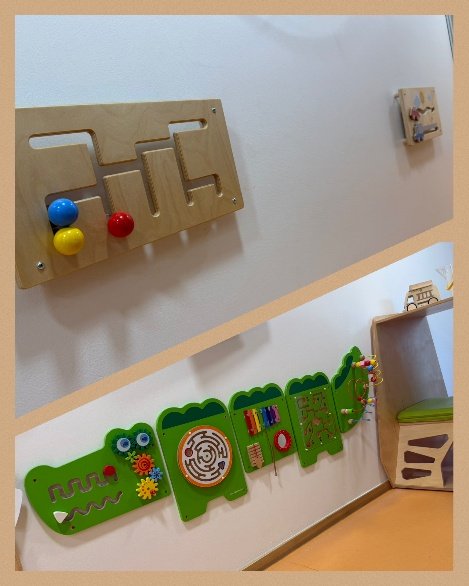 Unser liebevoll gestalteter Flur bietet ebenfalls Spielmöglichkeiten, wie Kletterturm, Rutsche, Wandelemente zum Bespielen und vieles mehr.