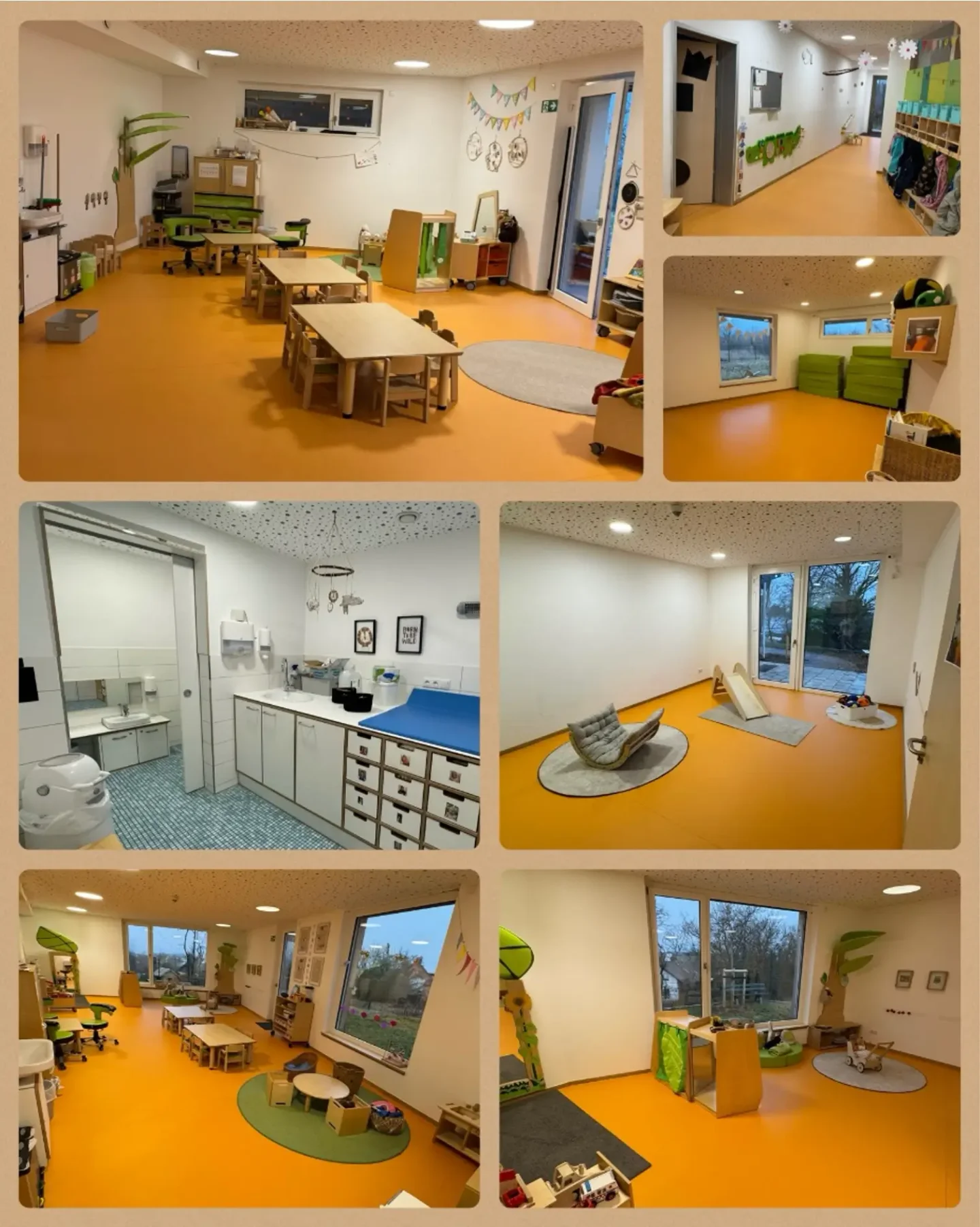 Eine Küche mit Personalzimmer sowie zwei Kindertoiletten und Wickelräume runden die Räumlichkeiten ab.